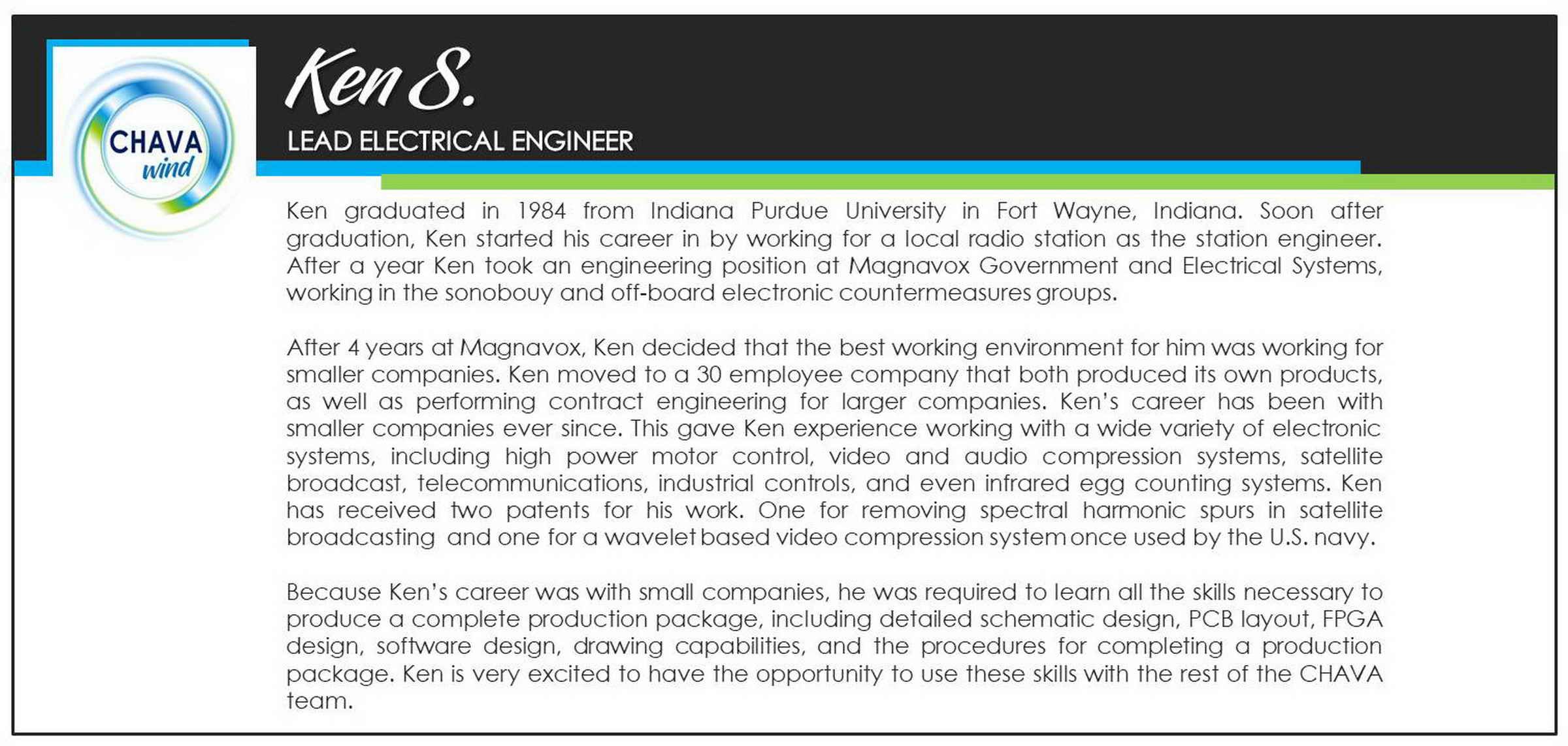 CHAVA approached the challenge of designing and manufacturing a leading edge, next generation small wind turbine by putting together a world class team of scientists, engineers, manufacturing experts, and process improvement specialists – spanning several continents – and all with a single focus on revolutionizing the economics and aesthetics of wind power.